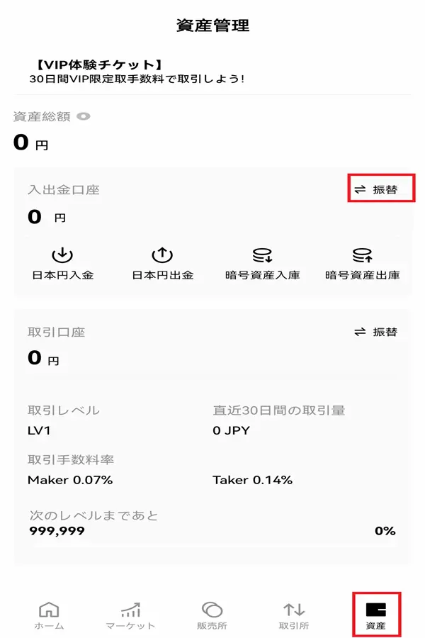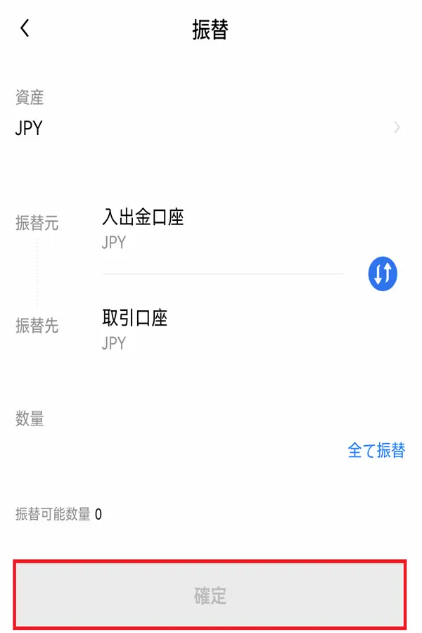 暗号資産(仮想通貨)の取引をするために、日本円を取引口座に移動します。
