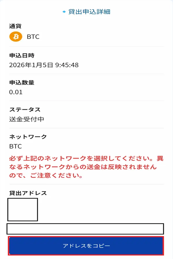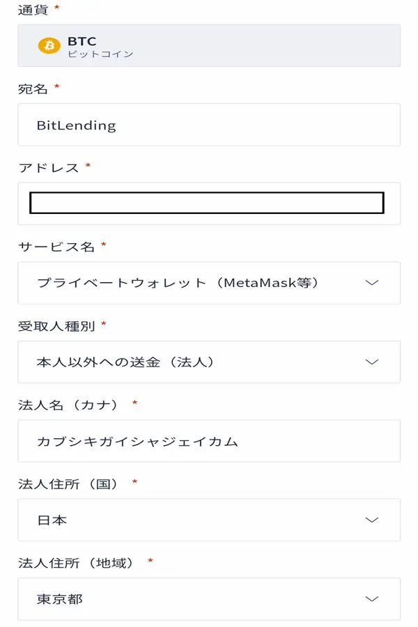 ビットレンディングへ送金際の注意点