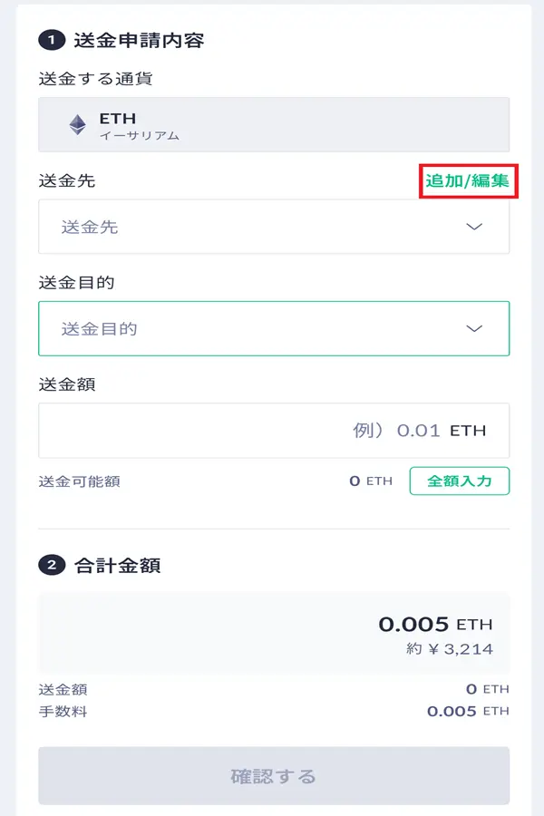 A. ETHの送金手数料は0.005 ETHです。送金額が少額だと、